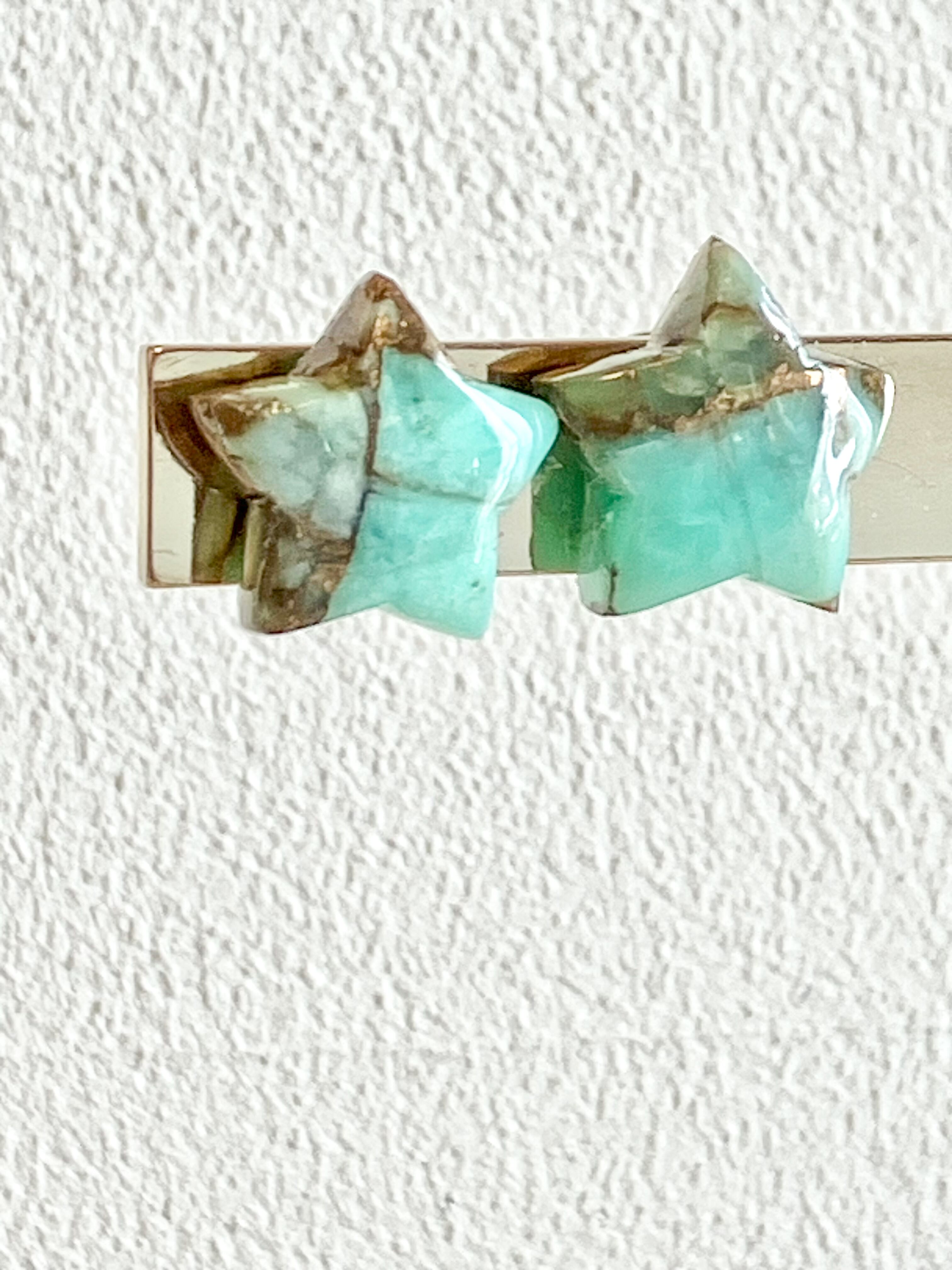 天然石クリソプレーズコッパー サージカルステンレスピアス STAR