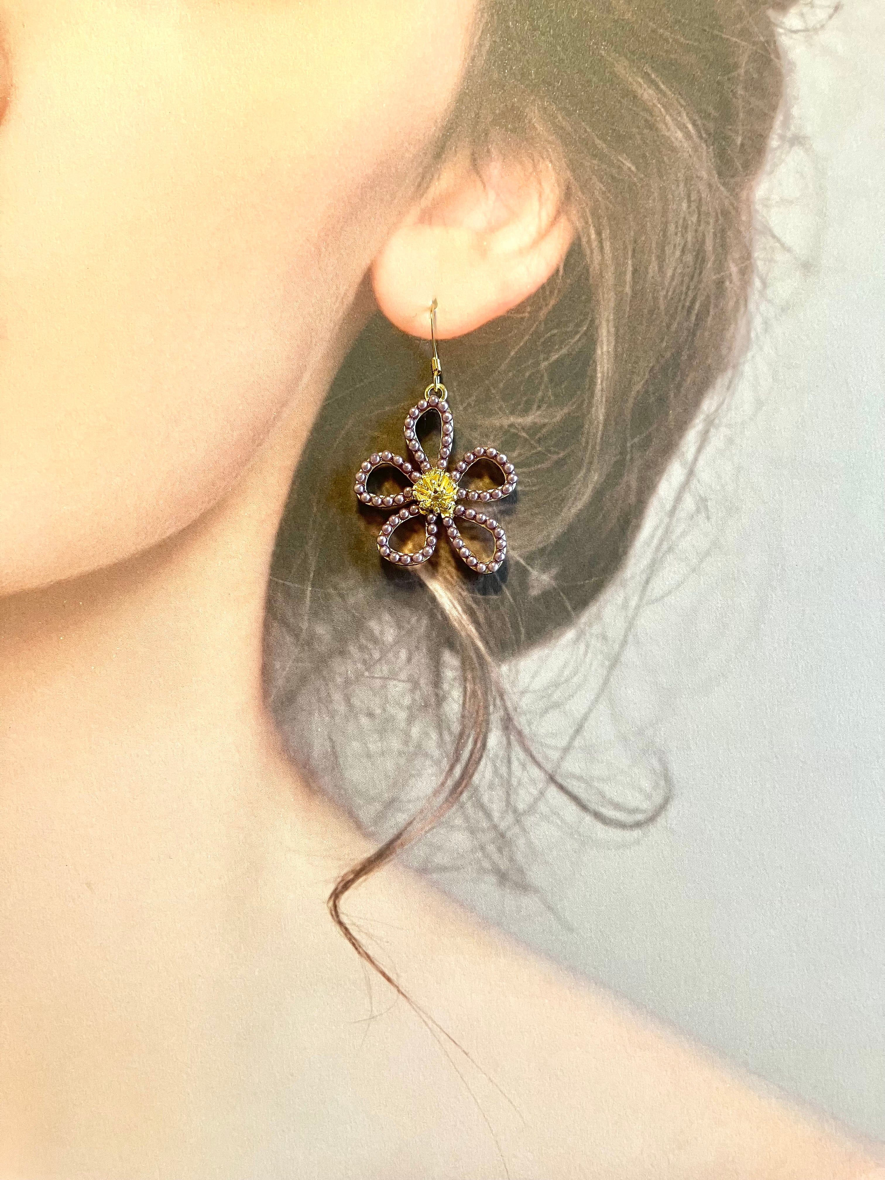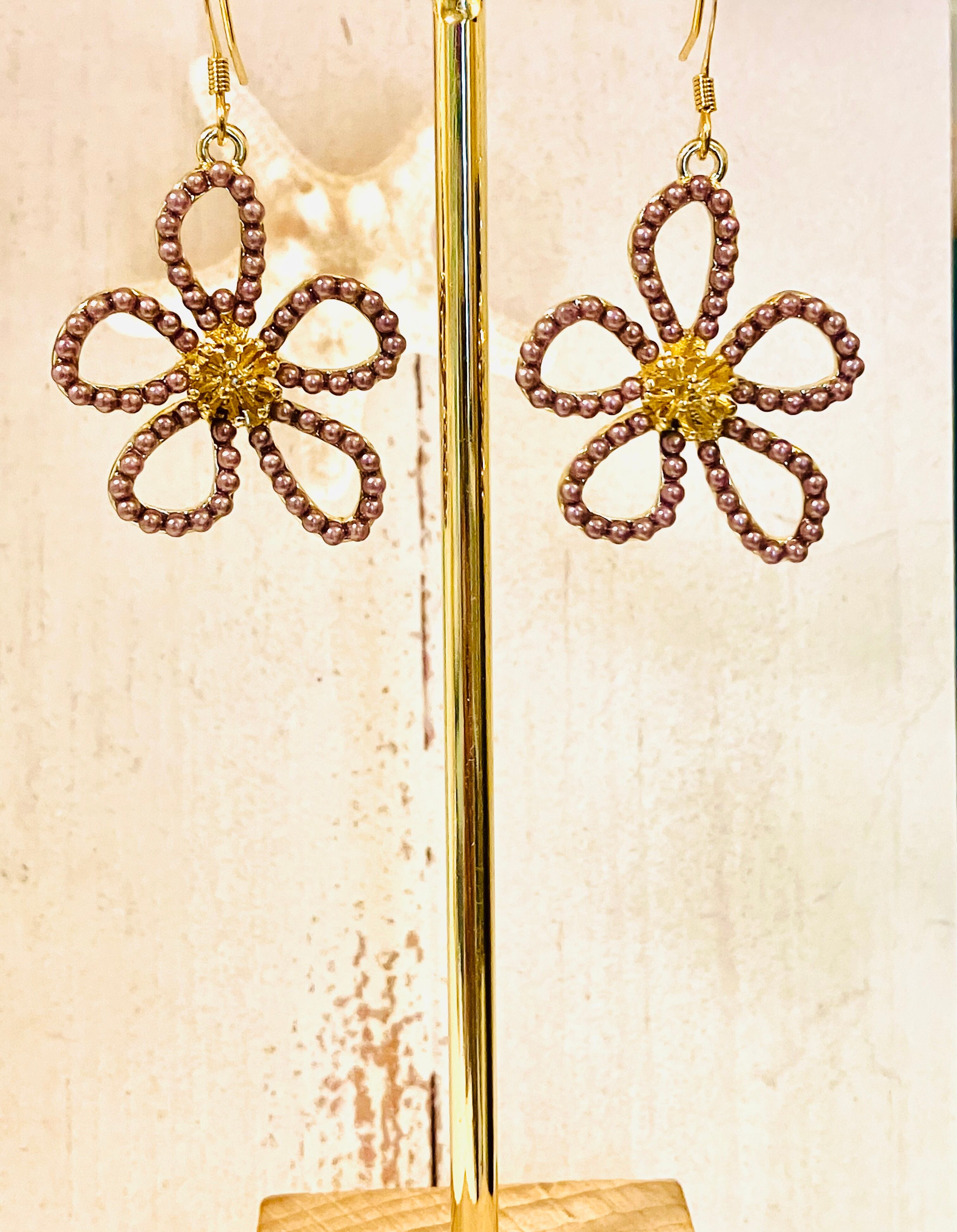 ビーズフラワーのサージカルステンレスピアス