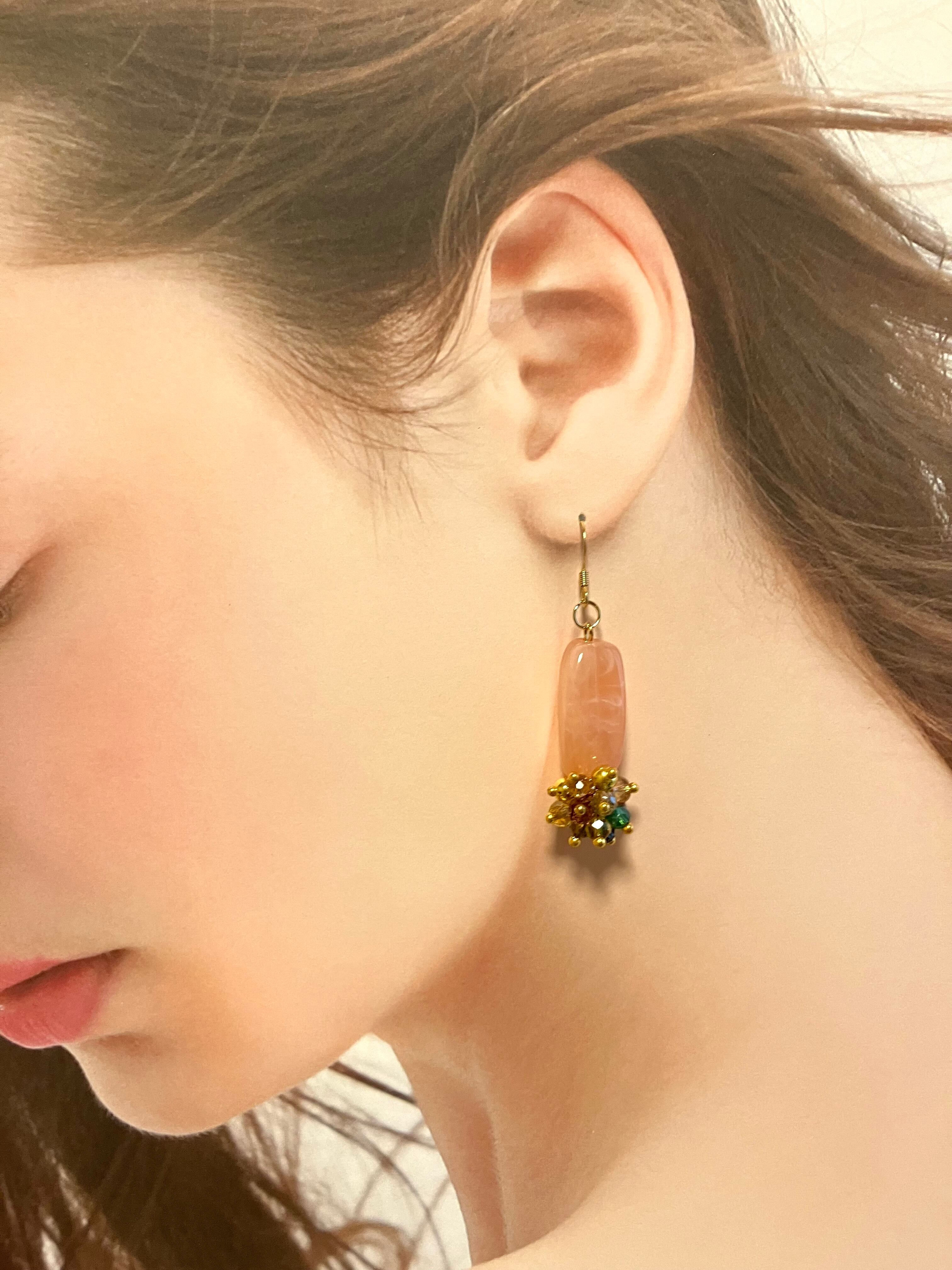 ヌーディーピンクカラー サージカルステンレスピアス ミックスシャンデリア