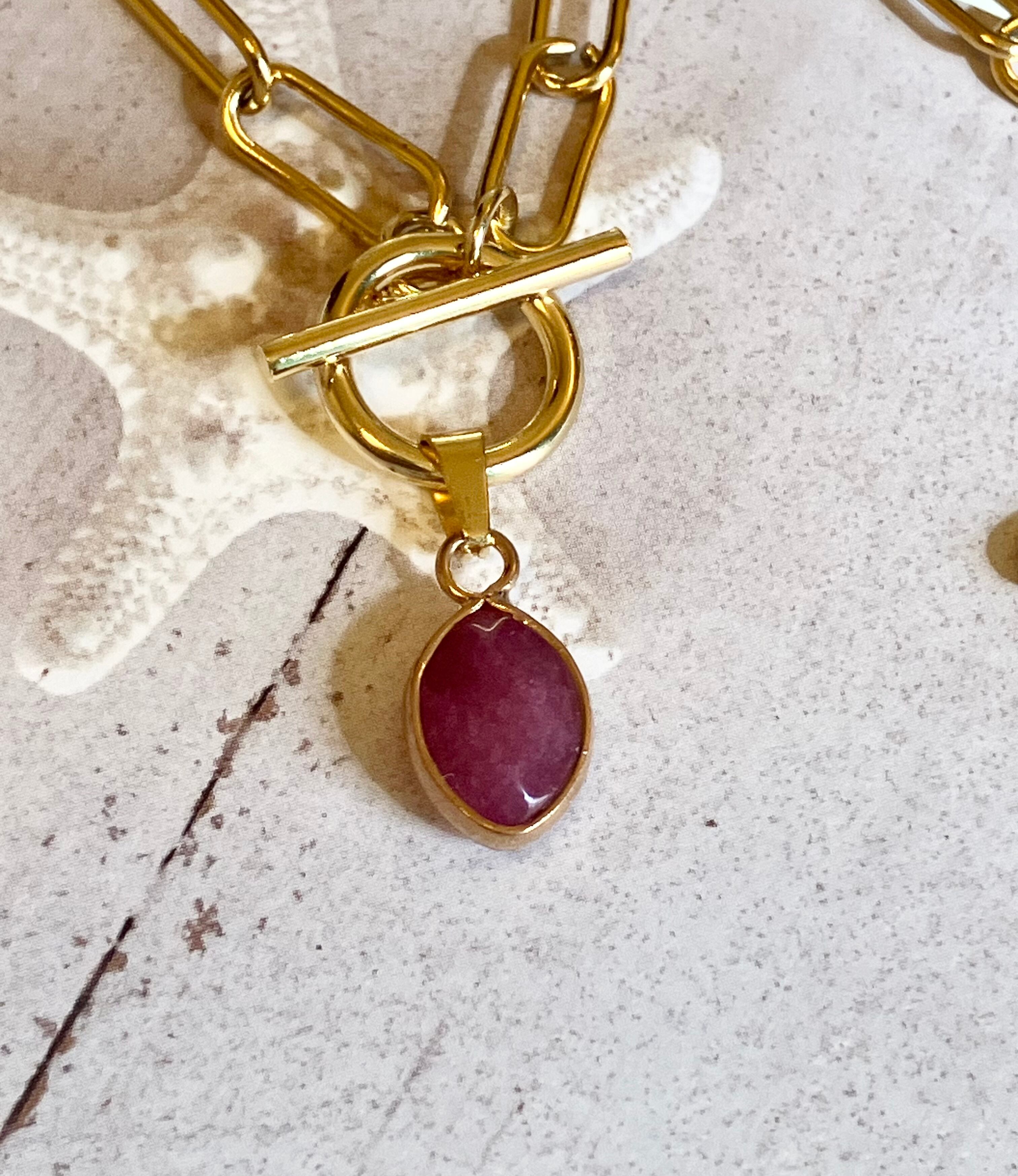 ⚪︎素材...チャーム 天然石ストロベリークォーツ マンテル&ネックレス サージカルステンレス