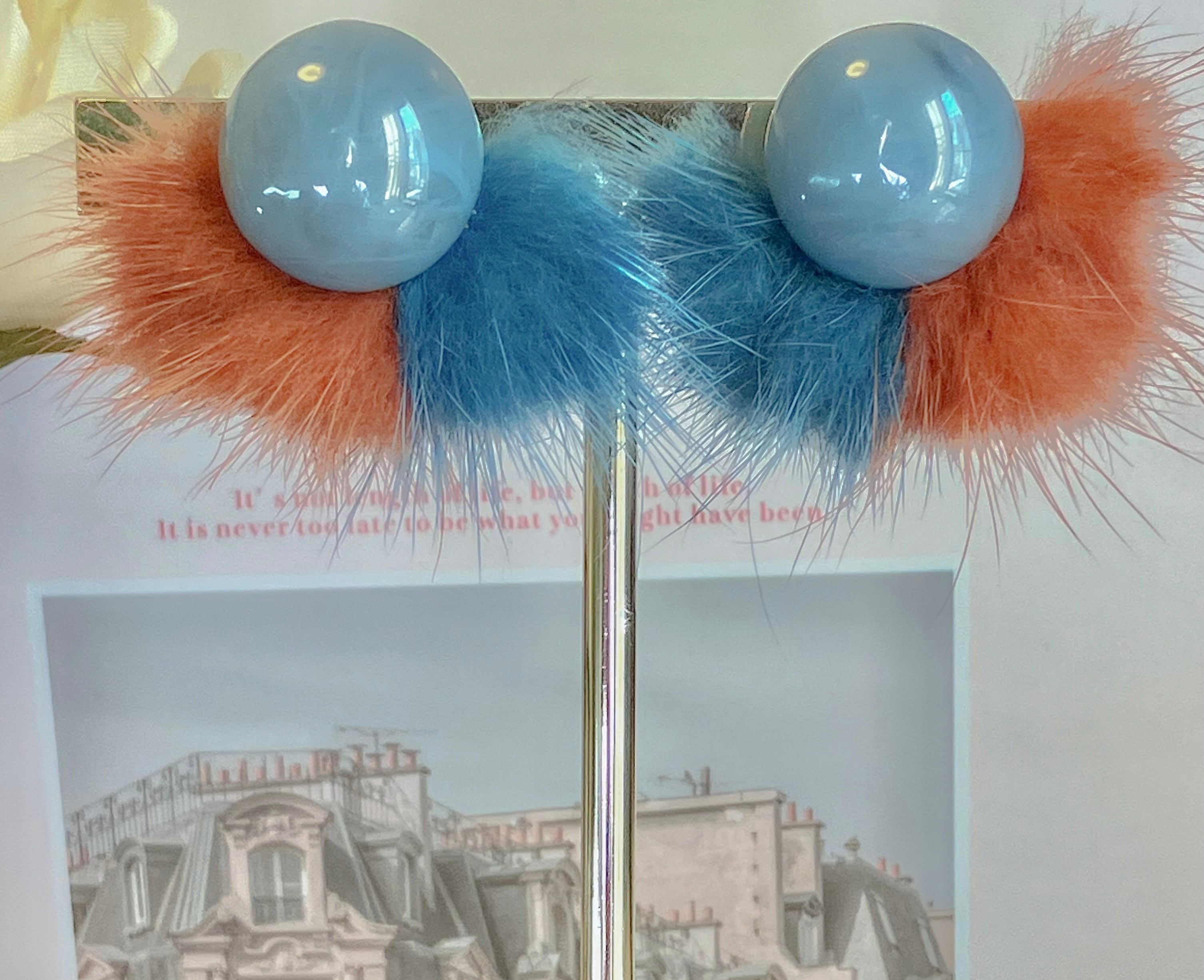 ニュアンスブルーとファーの2wayサージカルステンレスピアス color Blue