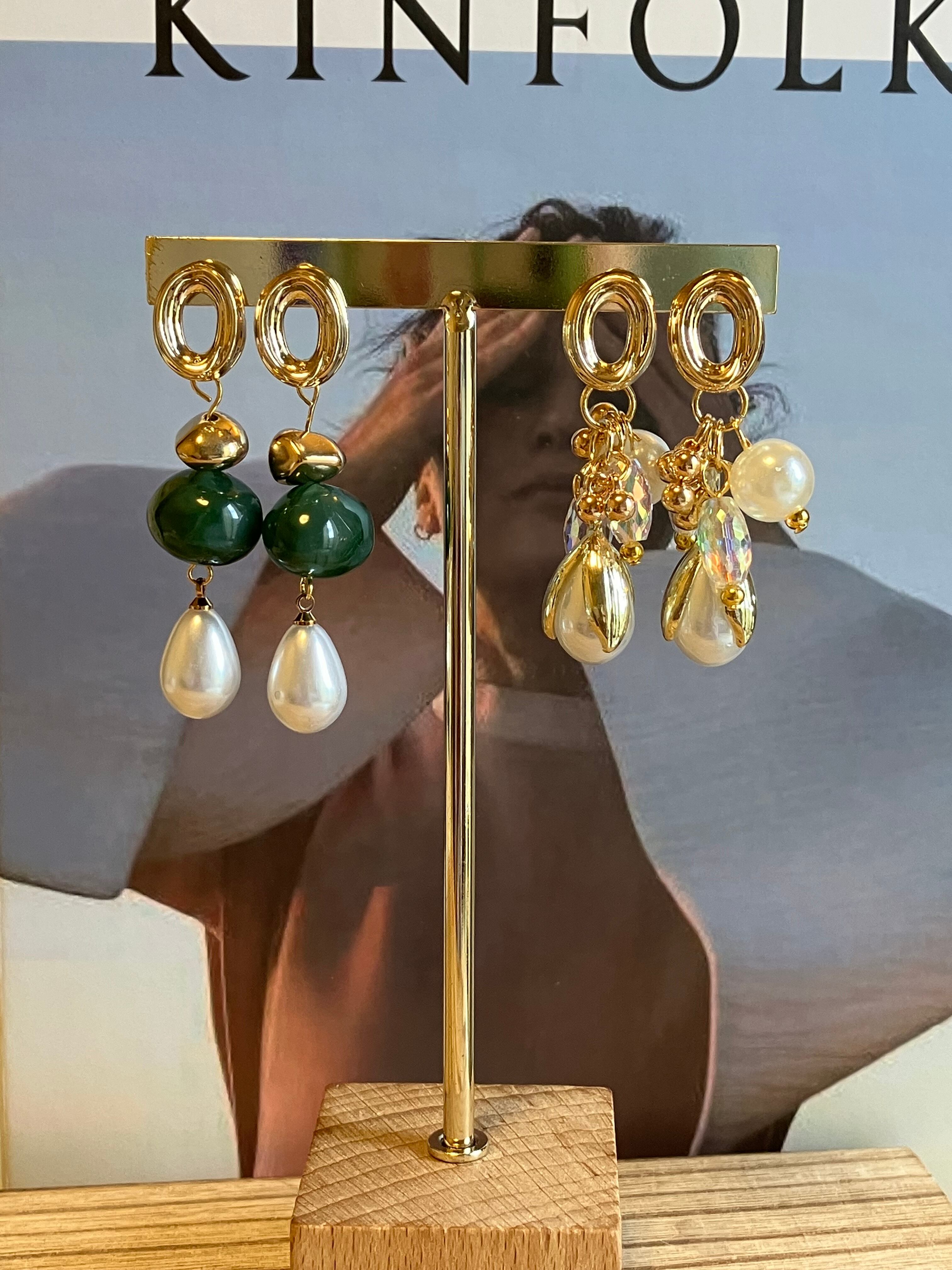 アクリルパールとグリーンのサージカルステンレスピアス