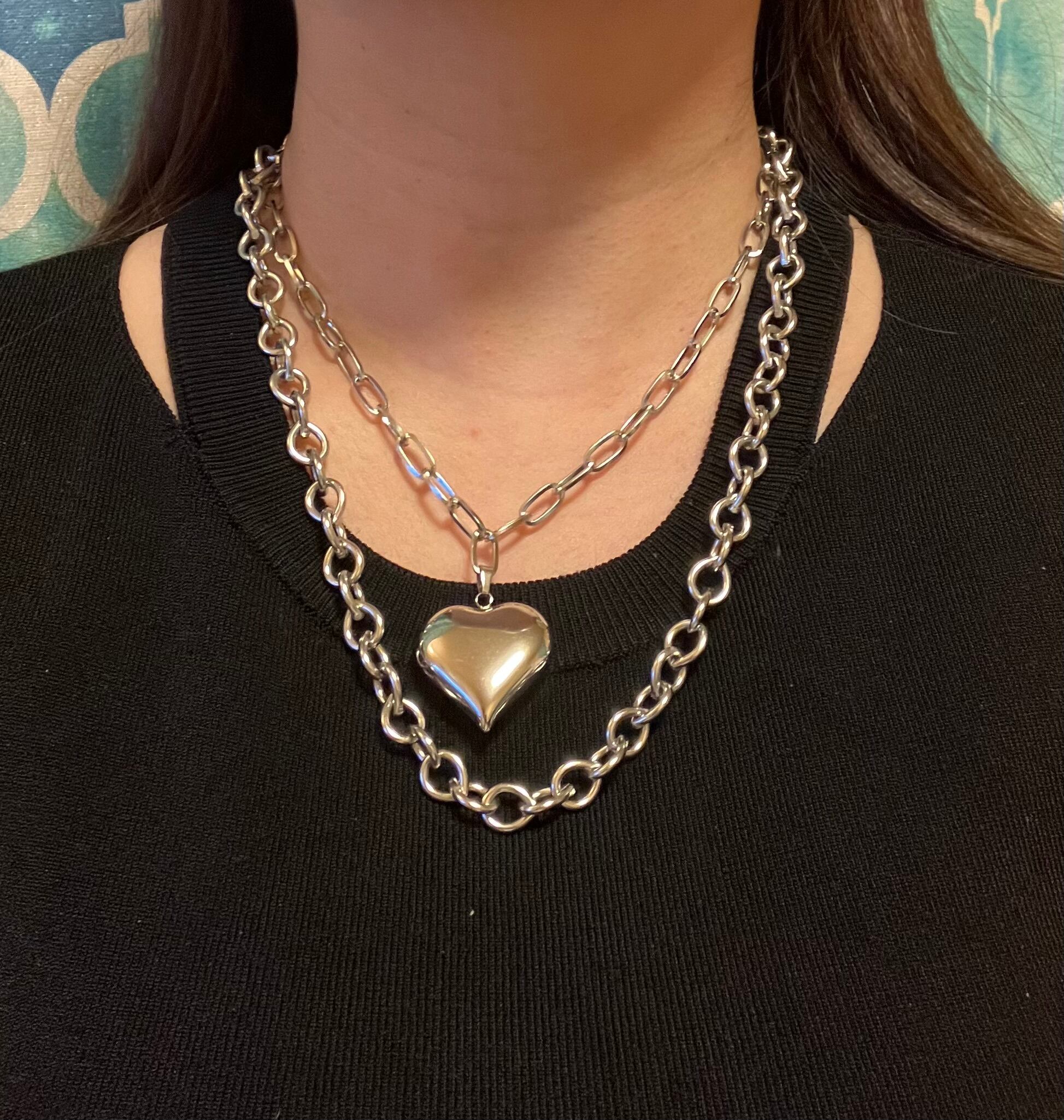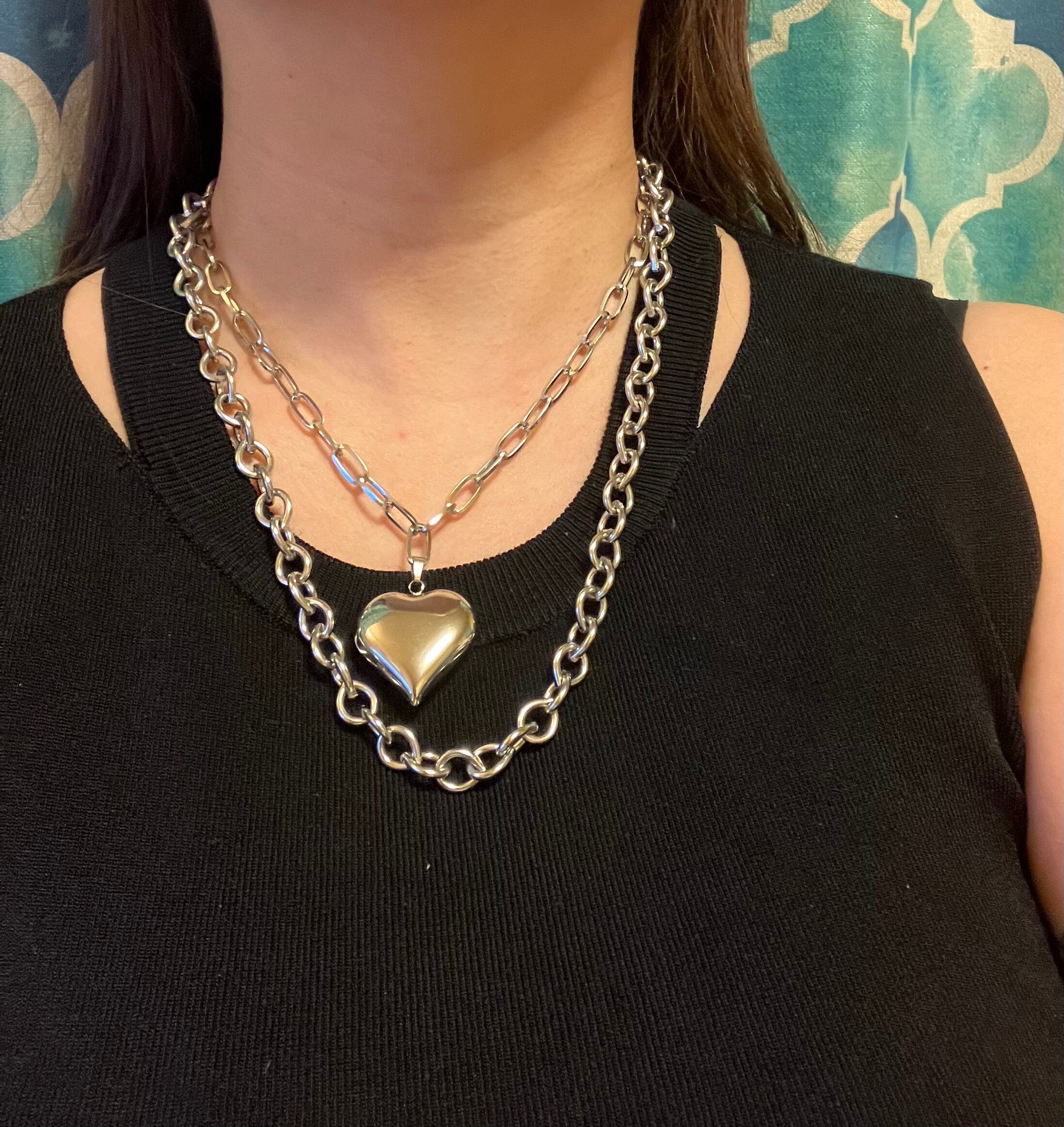 オールサージカルステンレス BIG Heart 2連ネックレス