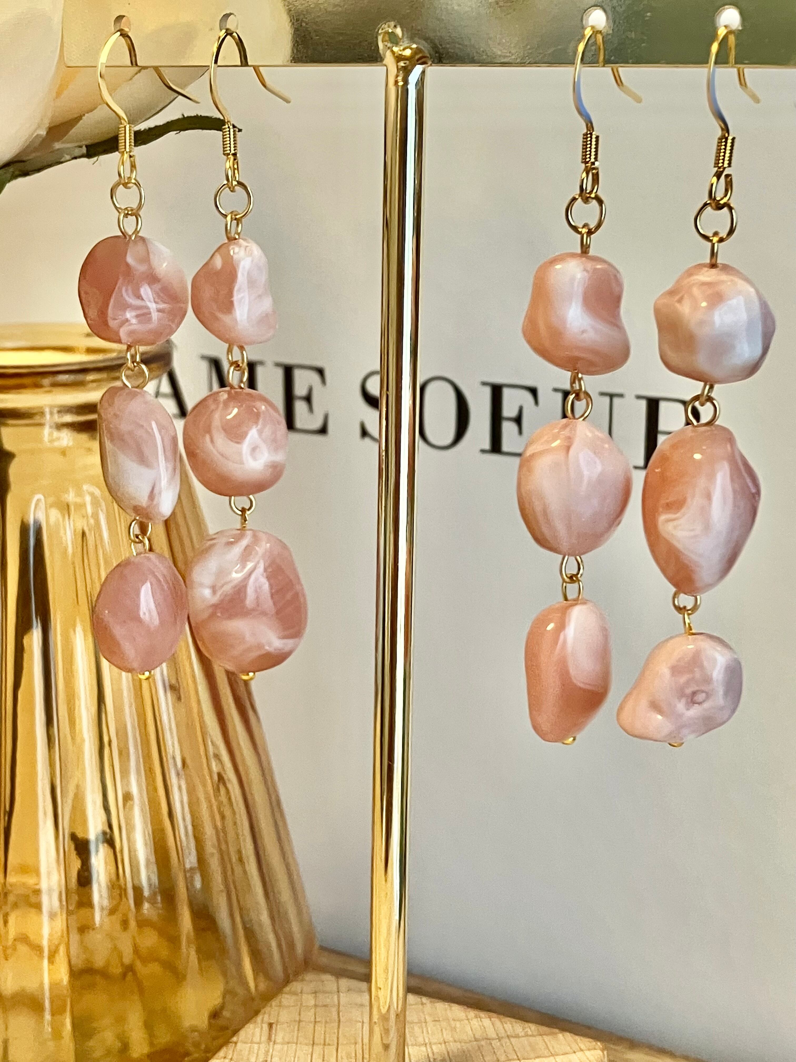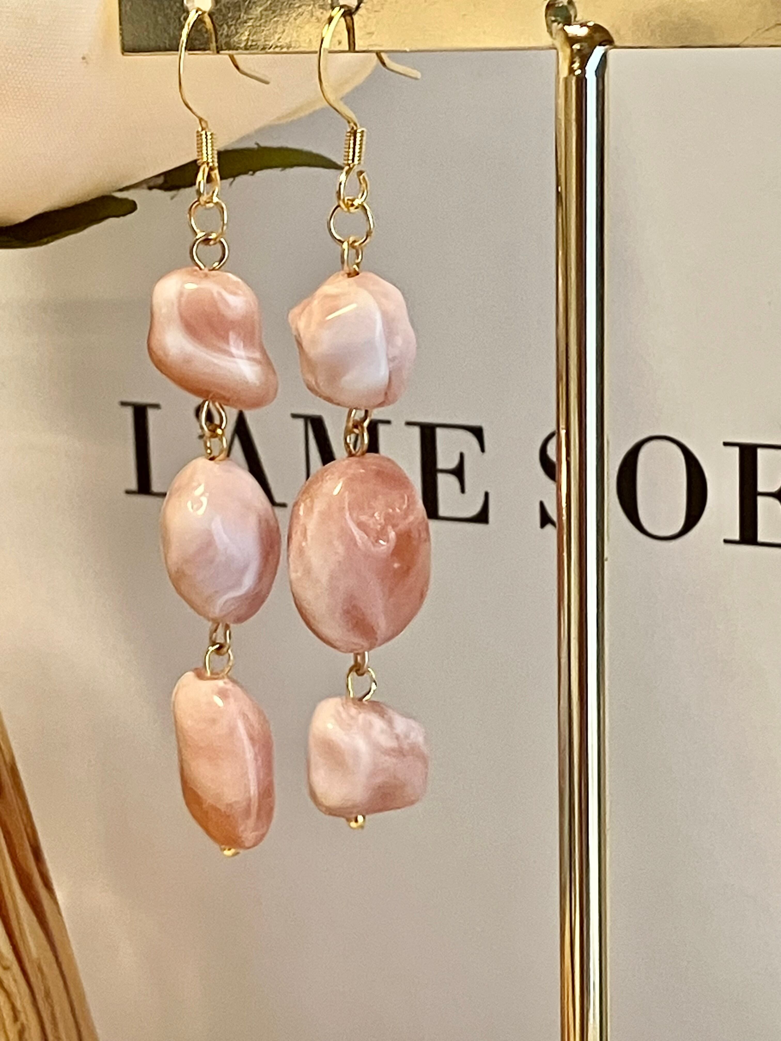 見た目よりも軽量で、付けやすい人気ピアスです。春カラーをお作りいたしました^ ^