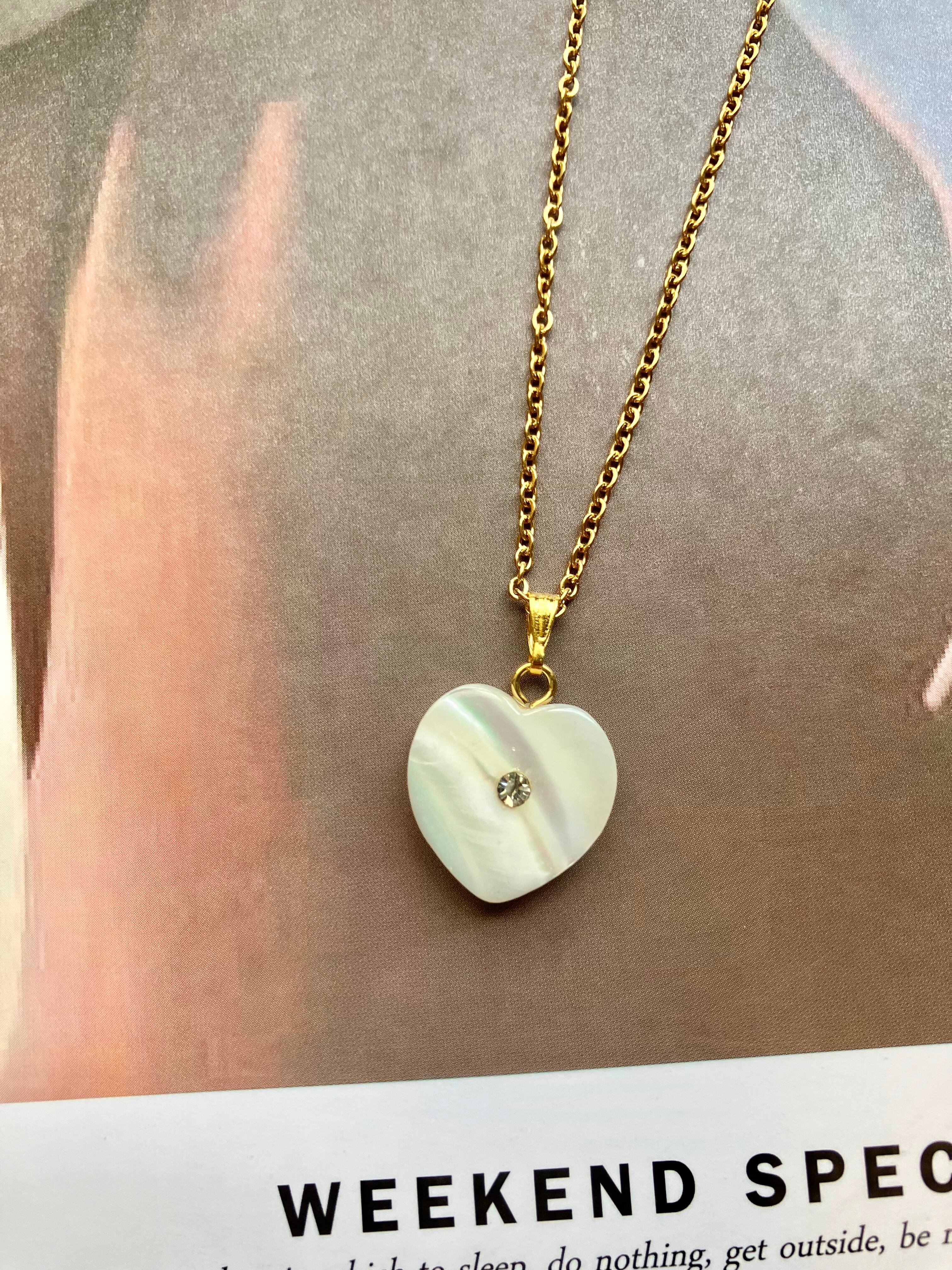 キラキラストーン付き天然シェルのサージカルステンレスネックレス