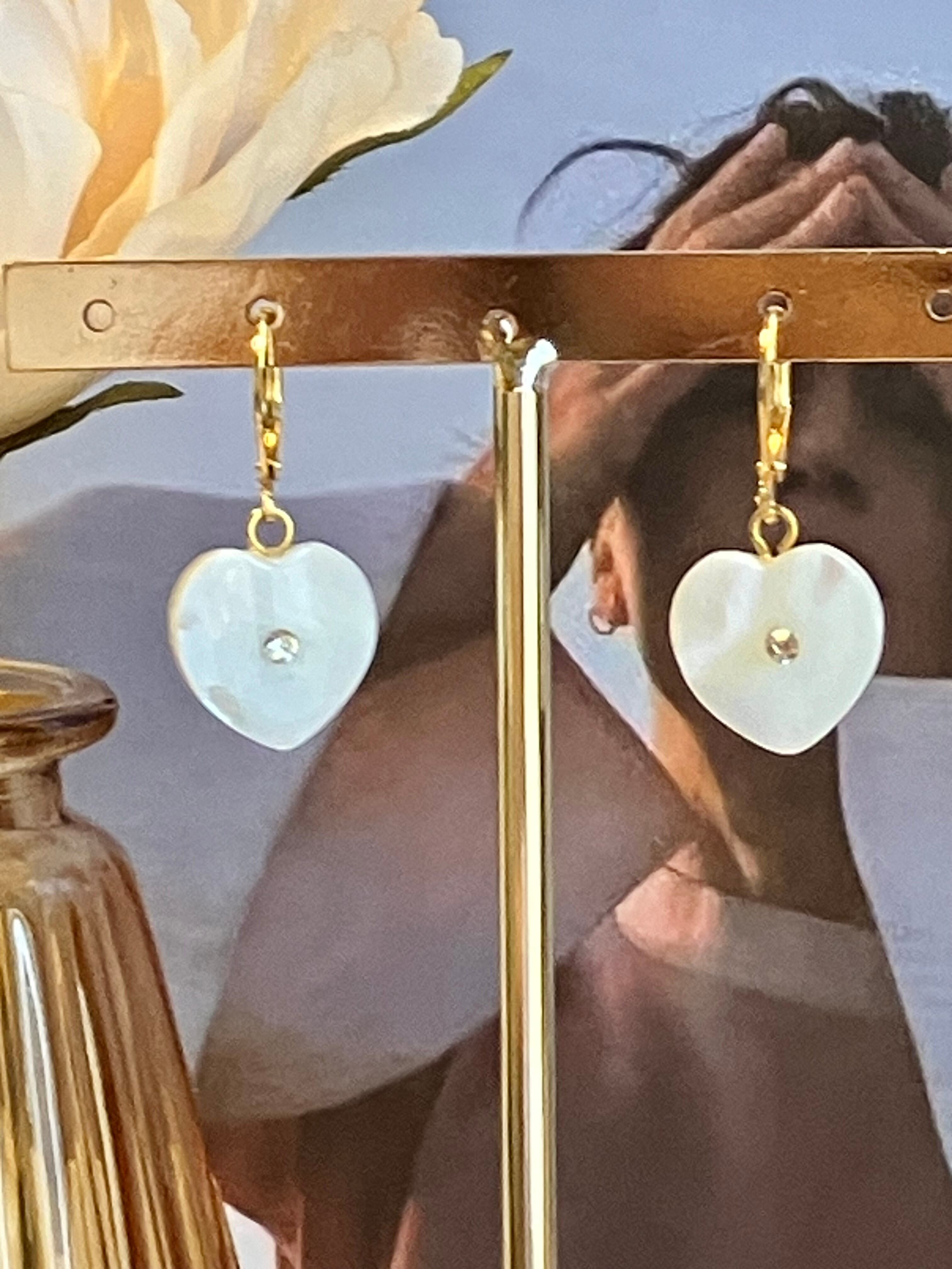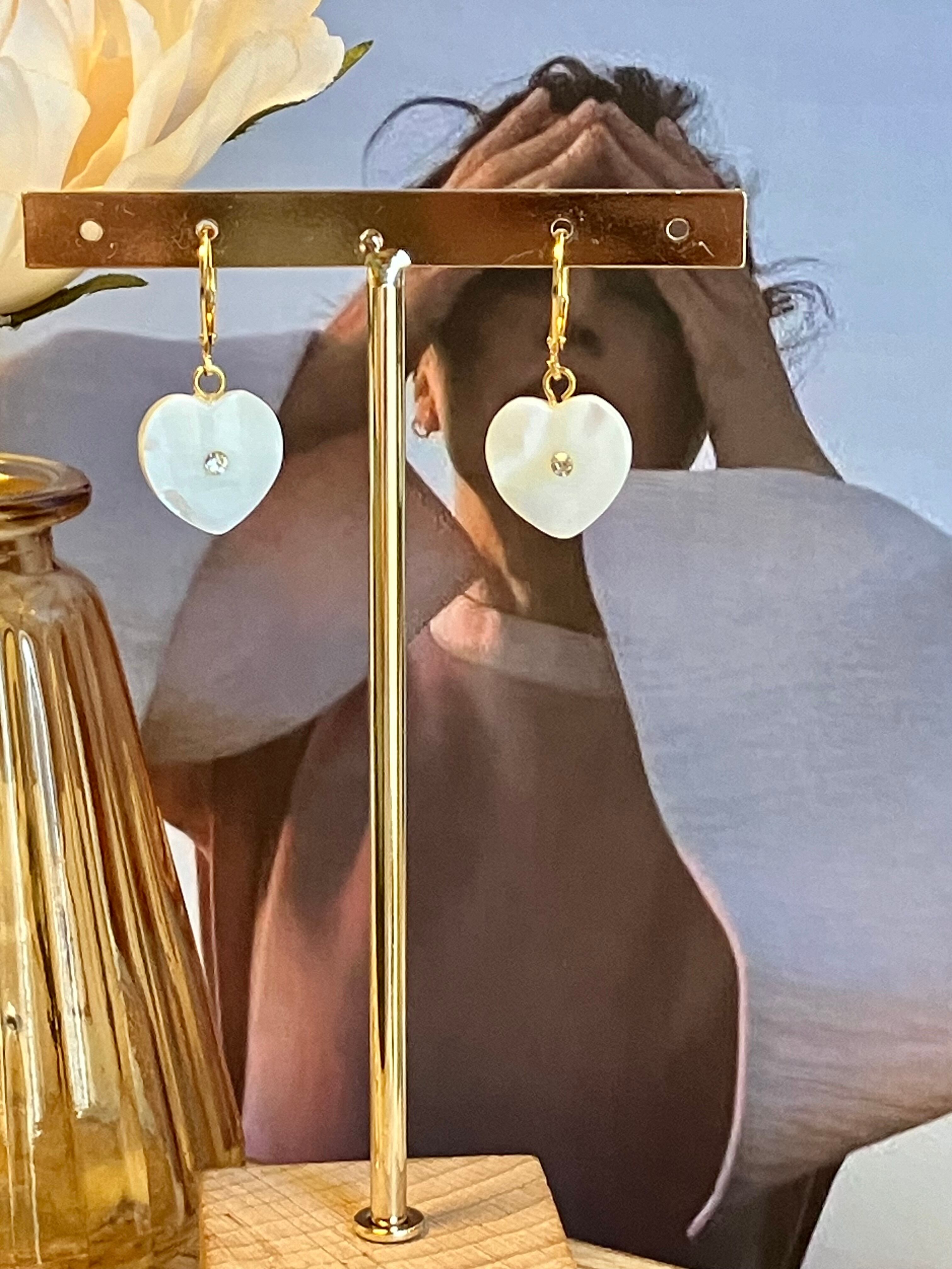 ビジュー付き淡水シェルのサージカルステンレスピアス