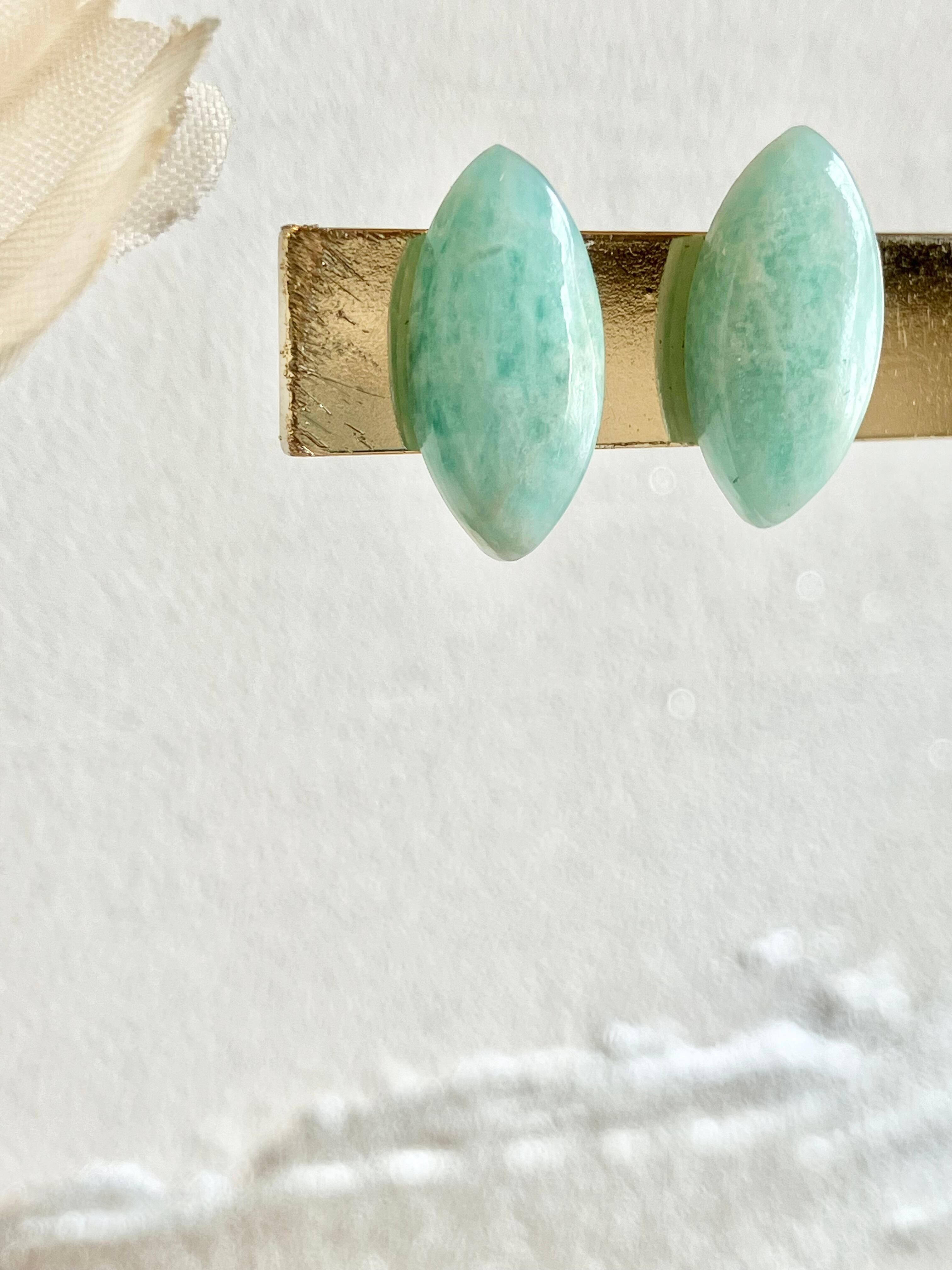 天然石アマゾナイト ミニ サージカルステンレスピアス マーキス型