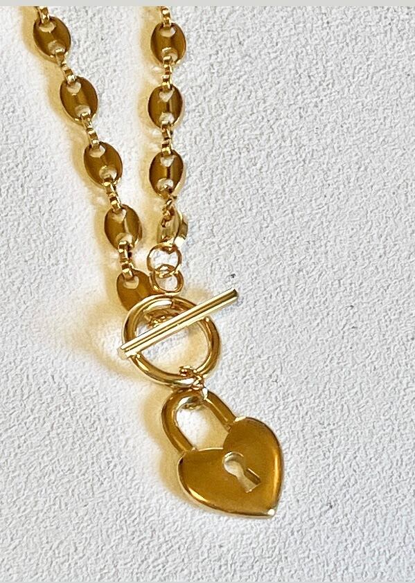 All stainless key heart mantel necklace 40cm TYPE