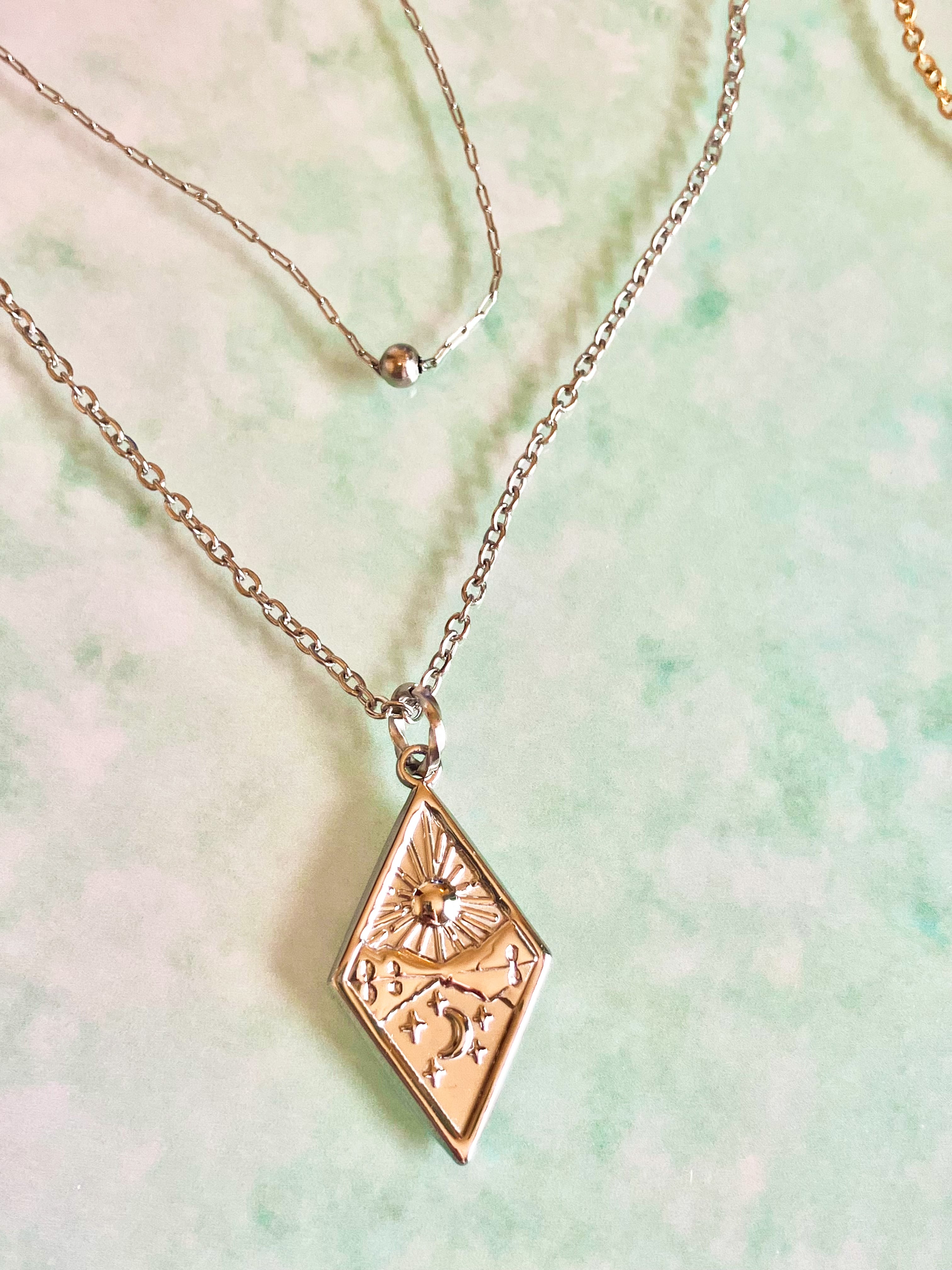 SUN and MOON 2連サージカルステンレスネックレス color/silver