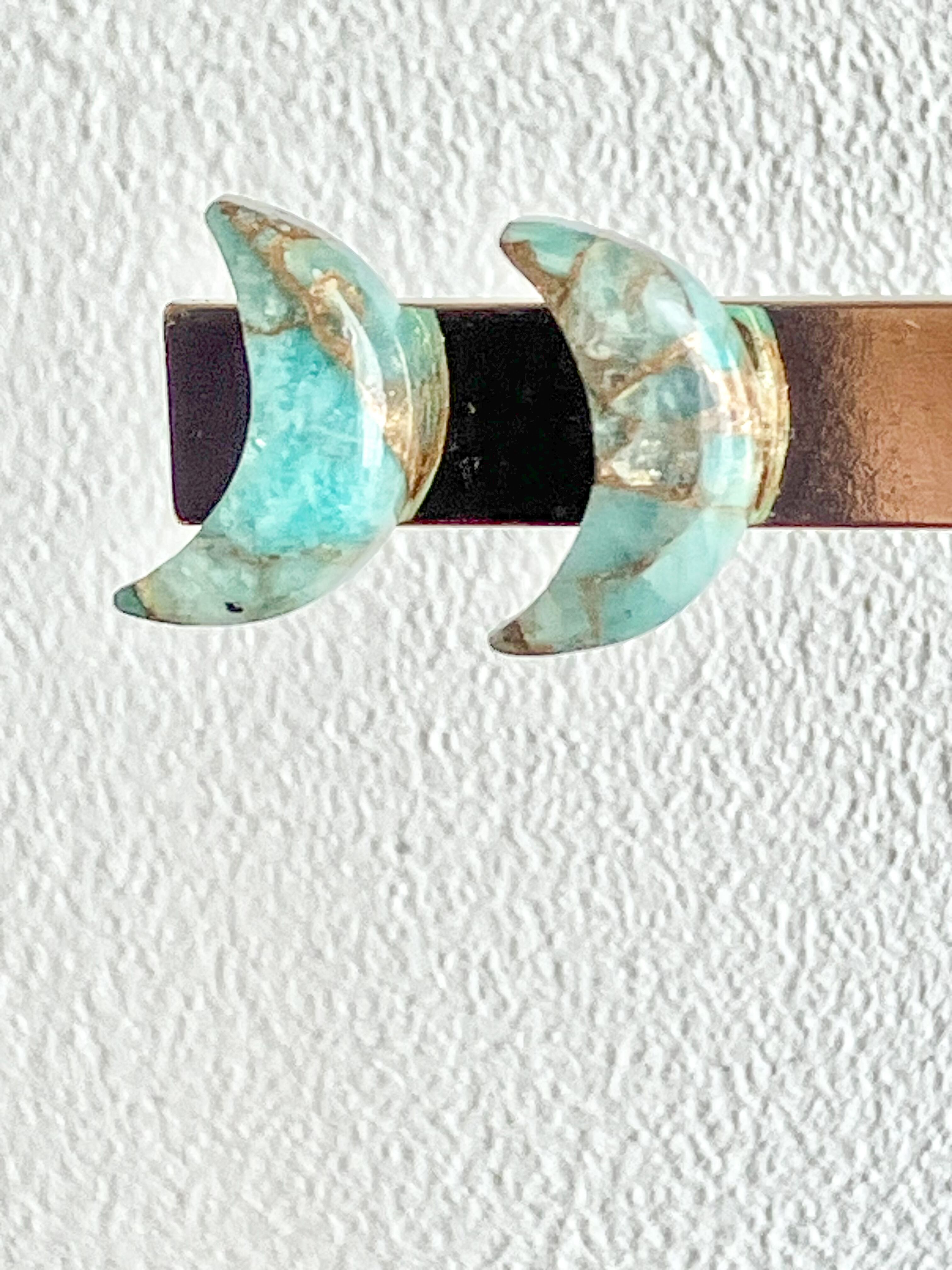 天然石アマゾナイトコッパー サージカルステンレスピアスmoon